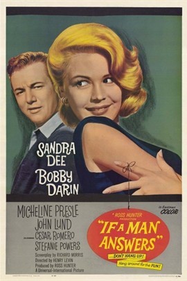 If a Man Answers (1962) 又名: 玉女戏夫 夏洛特(桑德拉·狄 Sandra Dee 饰)出生在一个非常开明的家庭之中,她的母亲杰曼(米谢If a Man Answers (1962) 又名: 玉女戏夫 夏洛特(桑德拉·狄 Sandra Dee 饰)出生在一个非常开明的家庭之中,她的母亲杰曼(米谢琳·普雷斯勒 Micheline Presle 饰)是一位风情万种的法国女子,夏洛特继承了母亲的多情。一次偶然中,夏洛特邂逅了名为尤金(鲍比·达林 Bobby Darin 饰)的摄影师,才华横溢的尤金很快就吸引了夏洛特的注意令她坠入情网,可是让夏洛特苦恼的是,尤金是一名不婚主义者。夏洛特向母亲求助,在杰曼的出谋划策之下,两人最终顺利的携手步入了婚姻的殿堂。可是幸福的生活没有持续太久,夏洛特的老同学蒂娜(斯蒂芬妮·鲍尔斯 Stefanie Powers 饰)成为了尤金的新模特。眼看着丈夫对自己越来越冷漠,夏洛特着急了。详情