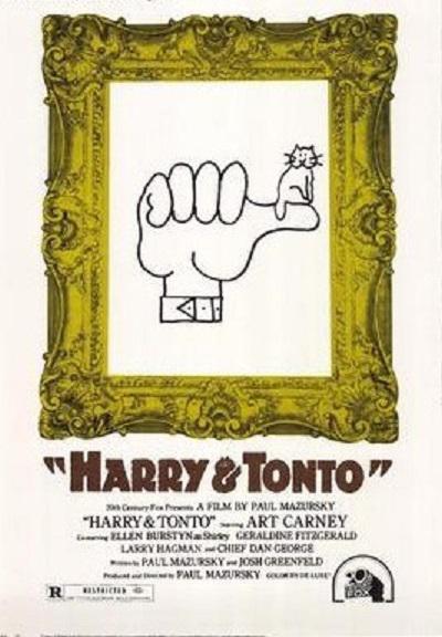 Harry and Tonto (1974) 又名: 天伦之旅 哈利( Art Carney 饰)是个退休教师,终其一生都在为妻女奋斗,住在纽约上西区的他,一直没有为自己追求什么,当政府为了兴建停车场而决定拆除哈利的房子,他打包行李带着他最忠心的好友 Tonto 一同展开了一场跨越美国的旅程,他沿途拜访子女与多年好友,也因此结识了许多新朋友...本片由 Paul Mazursky 执导,获得1974年奥斯卡最佳男主角与金球奖喜剧音乐类影片最佳男主角。